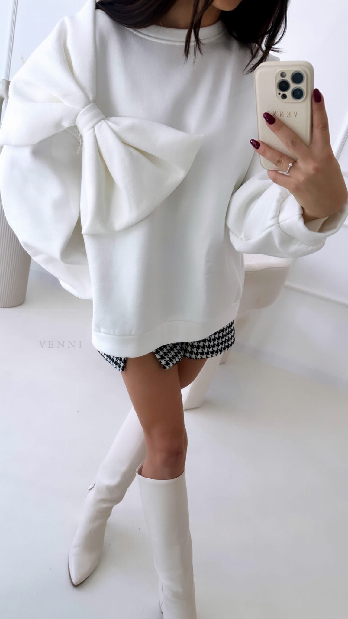 Bluza wykonana jest z dobrej jakości dresówki. Z przodu ozdobiona jest kokardą, która dodaje jej uroku. Zapewnia komfort jak i świetny wygląd. Dostępna w dwóch kolorach, które idealnie podbiją kolor karnacji. Bluza bardzo ,, mięsista,, porządnie wykonana.