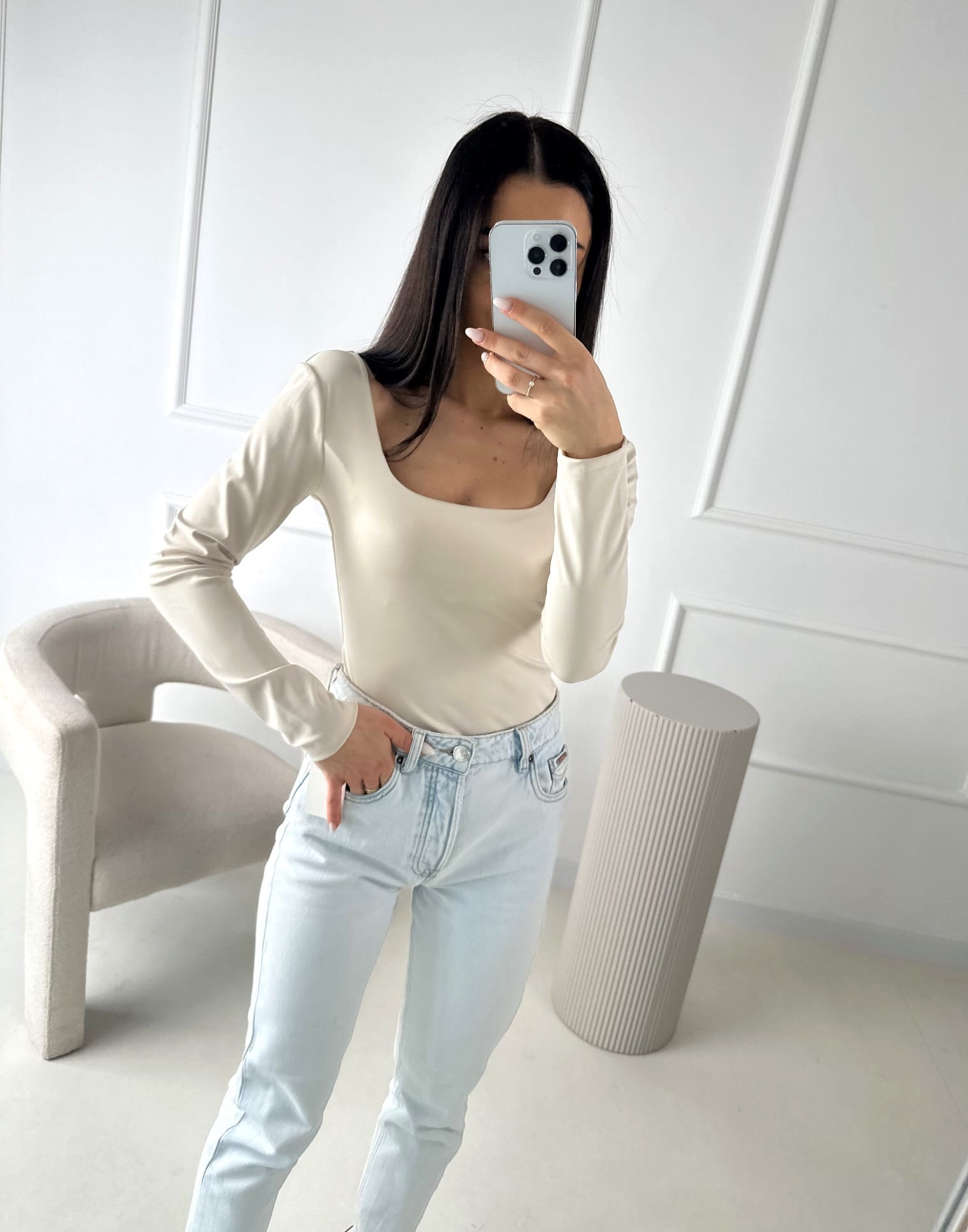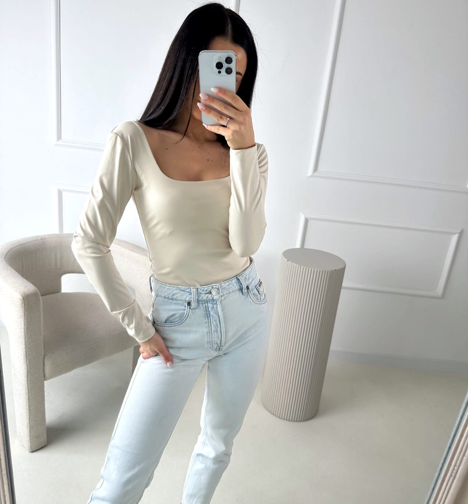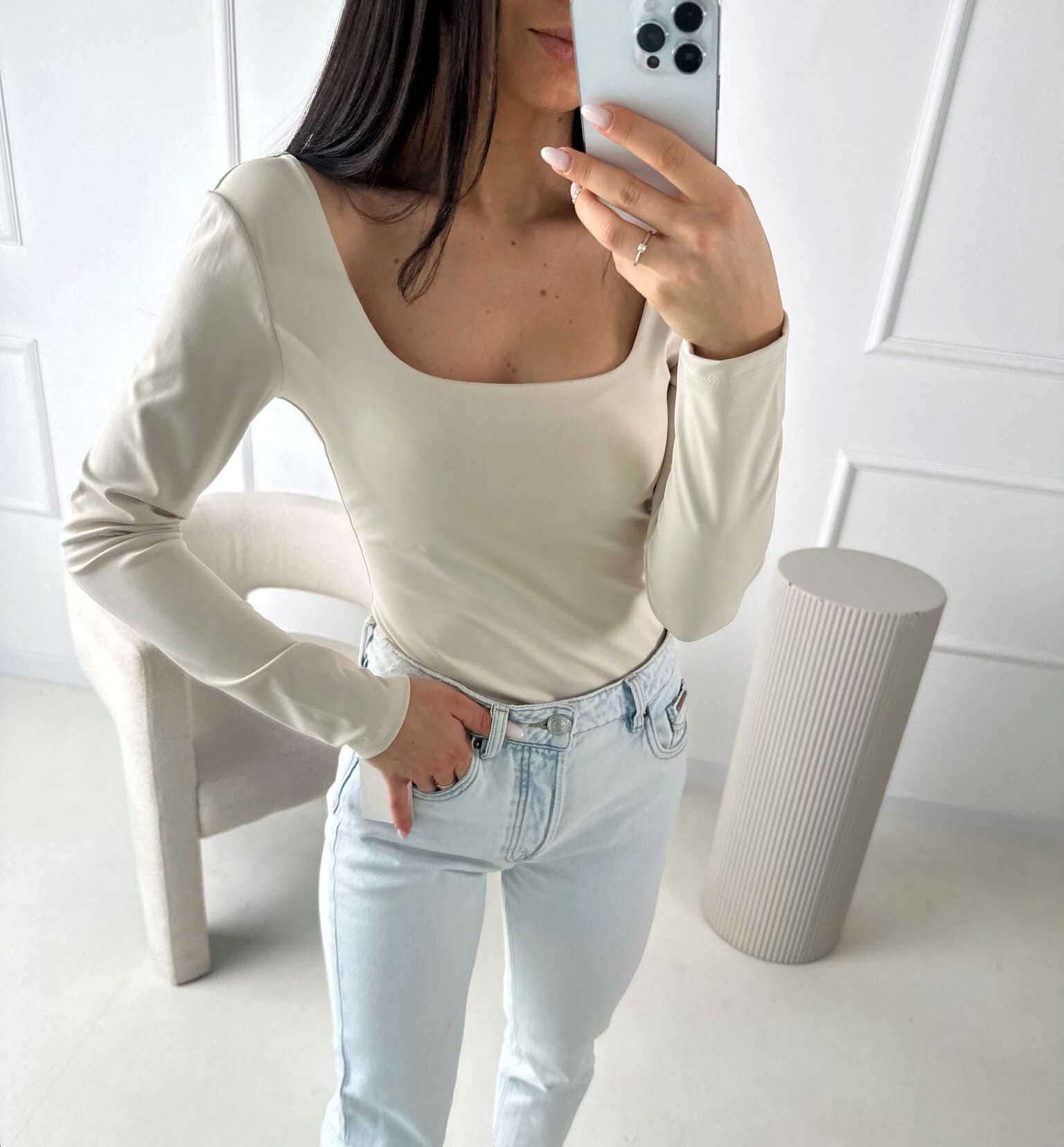 Body Beżowe z kwadratowym dekoltem
