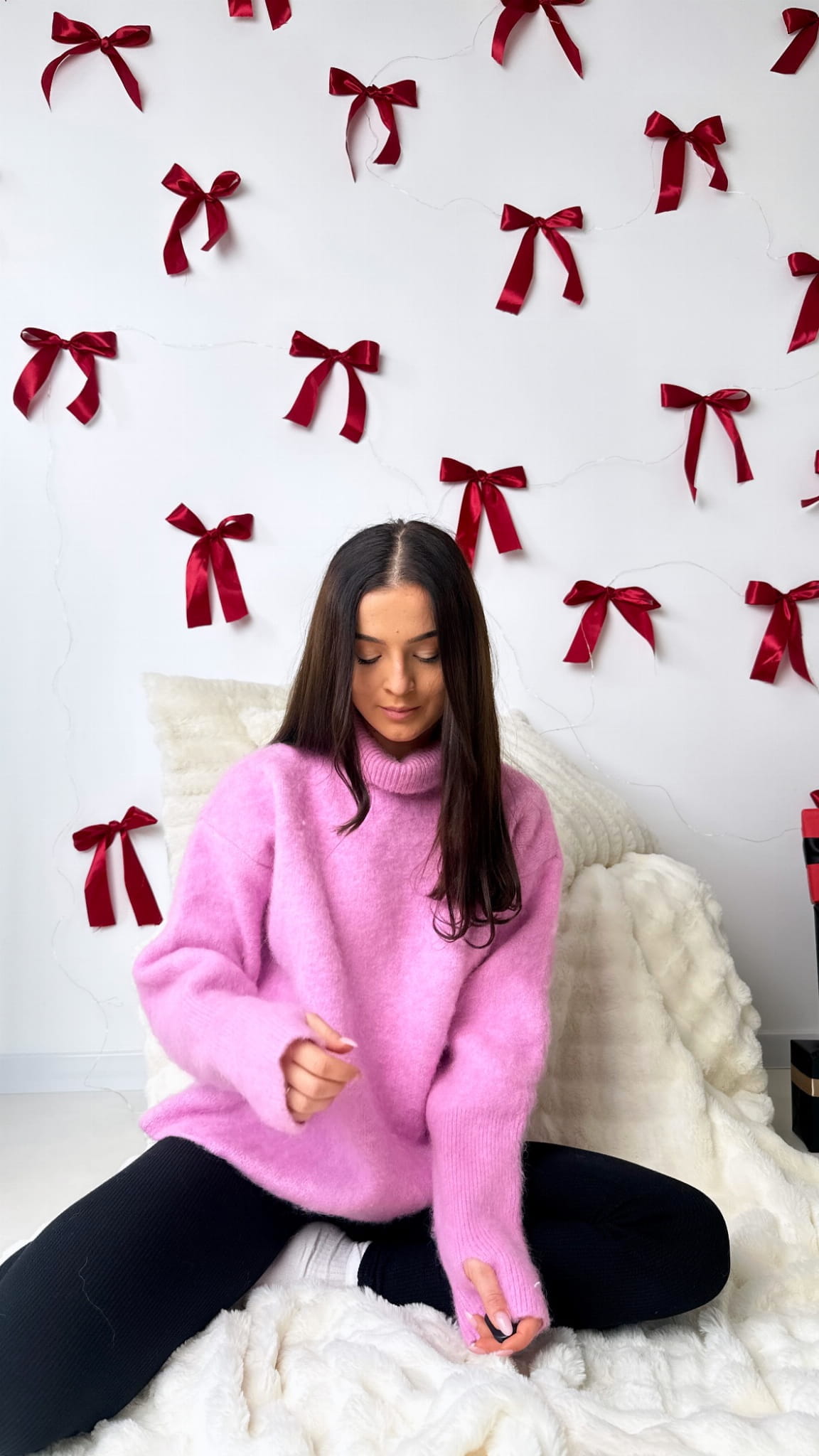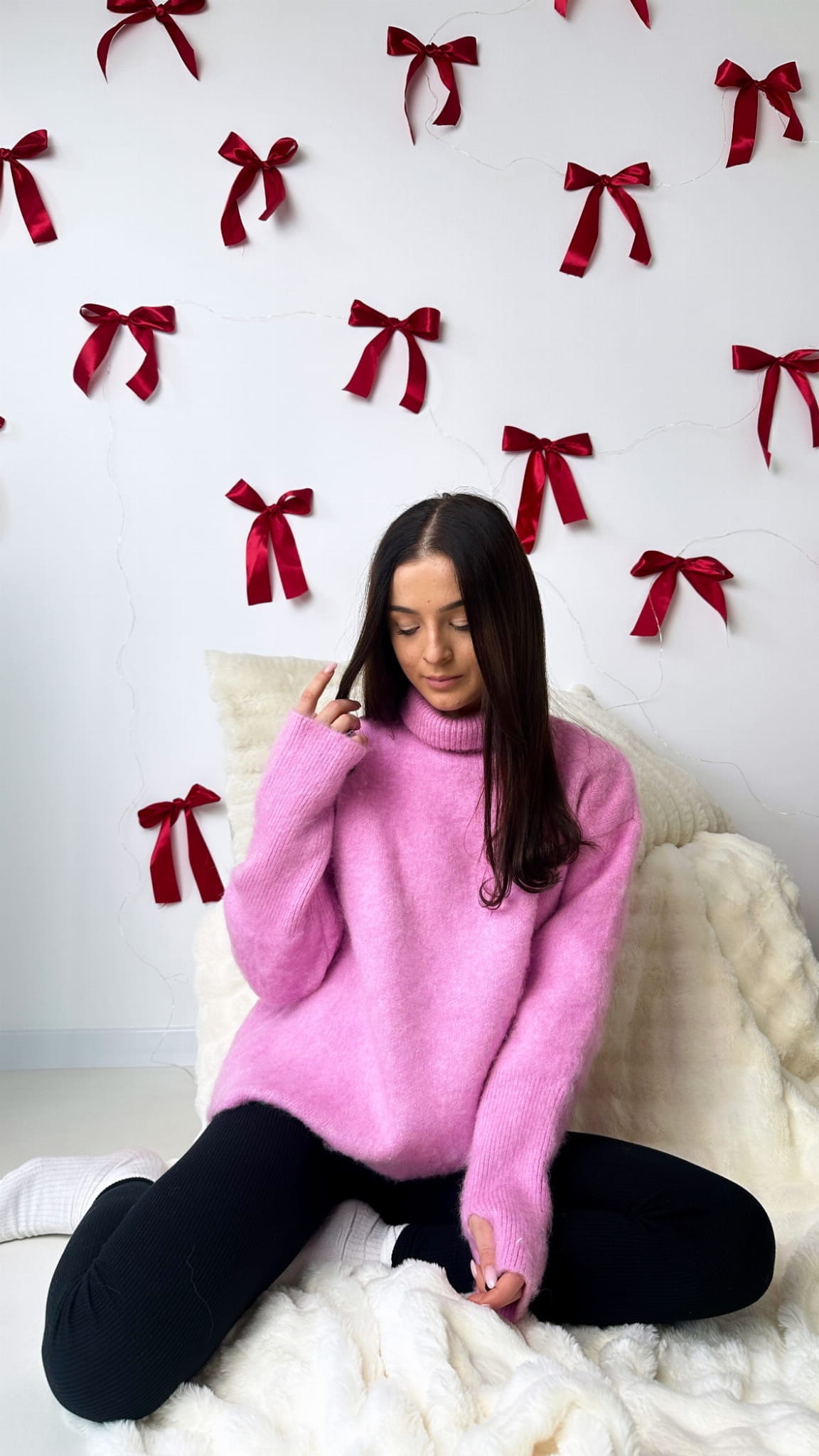 WEŁNIANY SWETER - wełniany sweter z wysokim golfem - który bez problemu można wywinąć aby go skrócić. Posiada wycięcie na kciuk przy rękawach. Idealny na zimowe wyjazdy podczas, których będziemy sobie cenić ciepło oraz modowy styl. Świetny do casualowych i eleganckich stylizacji. Dostępny w dwóch wariantach kolorystycznych - róż oraz ecru.