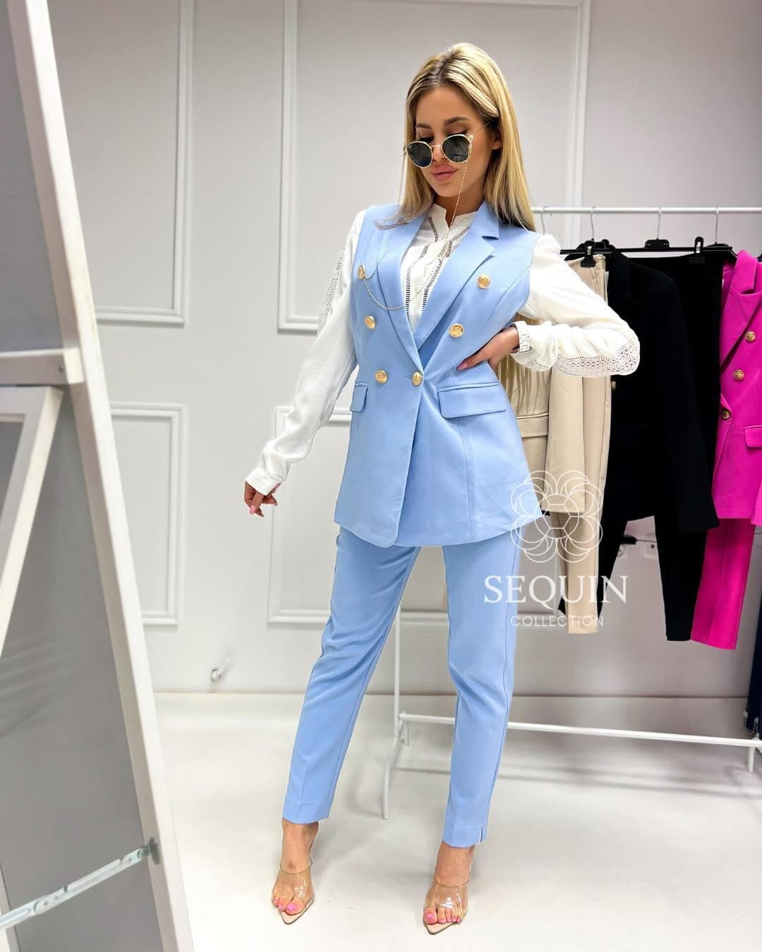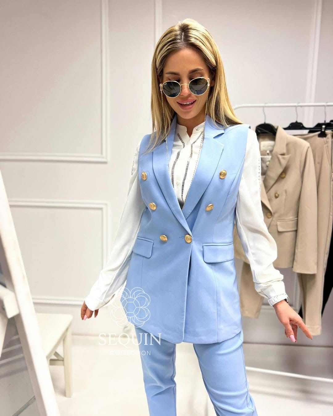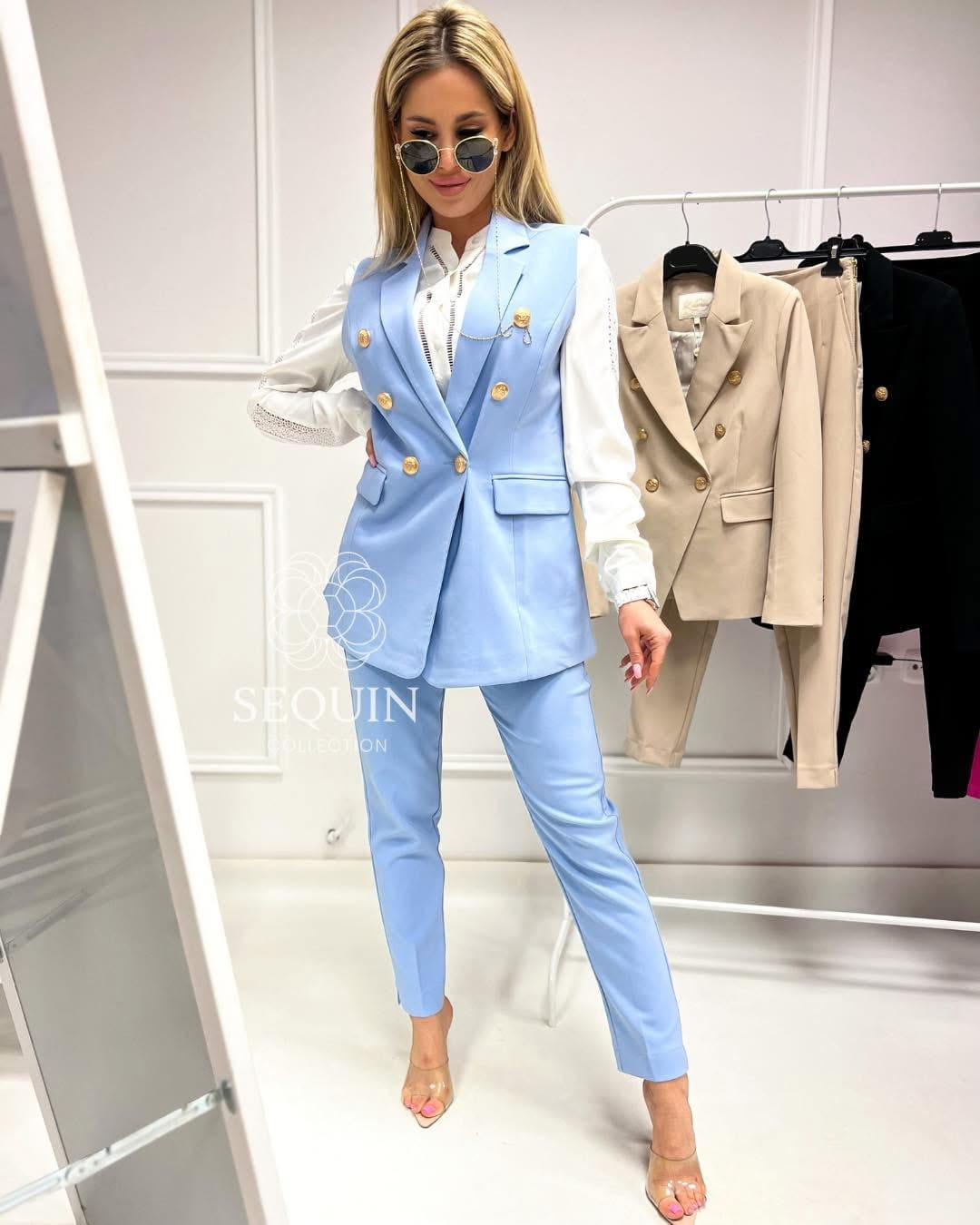 Przepiękna kamizelka, wykonana z najwyższej jakości materiału. Piękny klasyczny krój zdobiony bogatymi, biżuteryjnymi guzikami. Model ponadczasowy i elegancki.