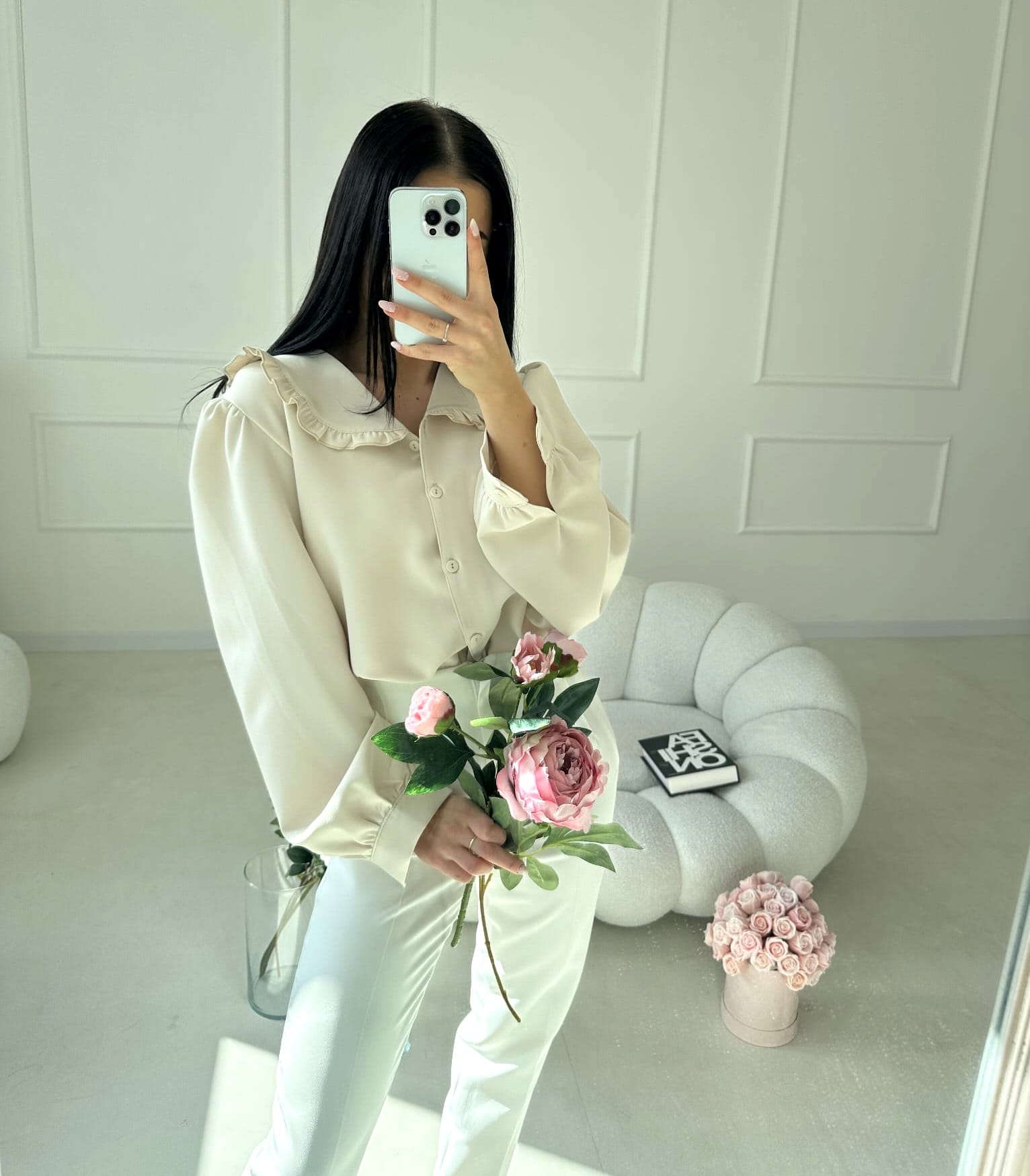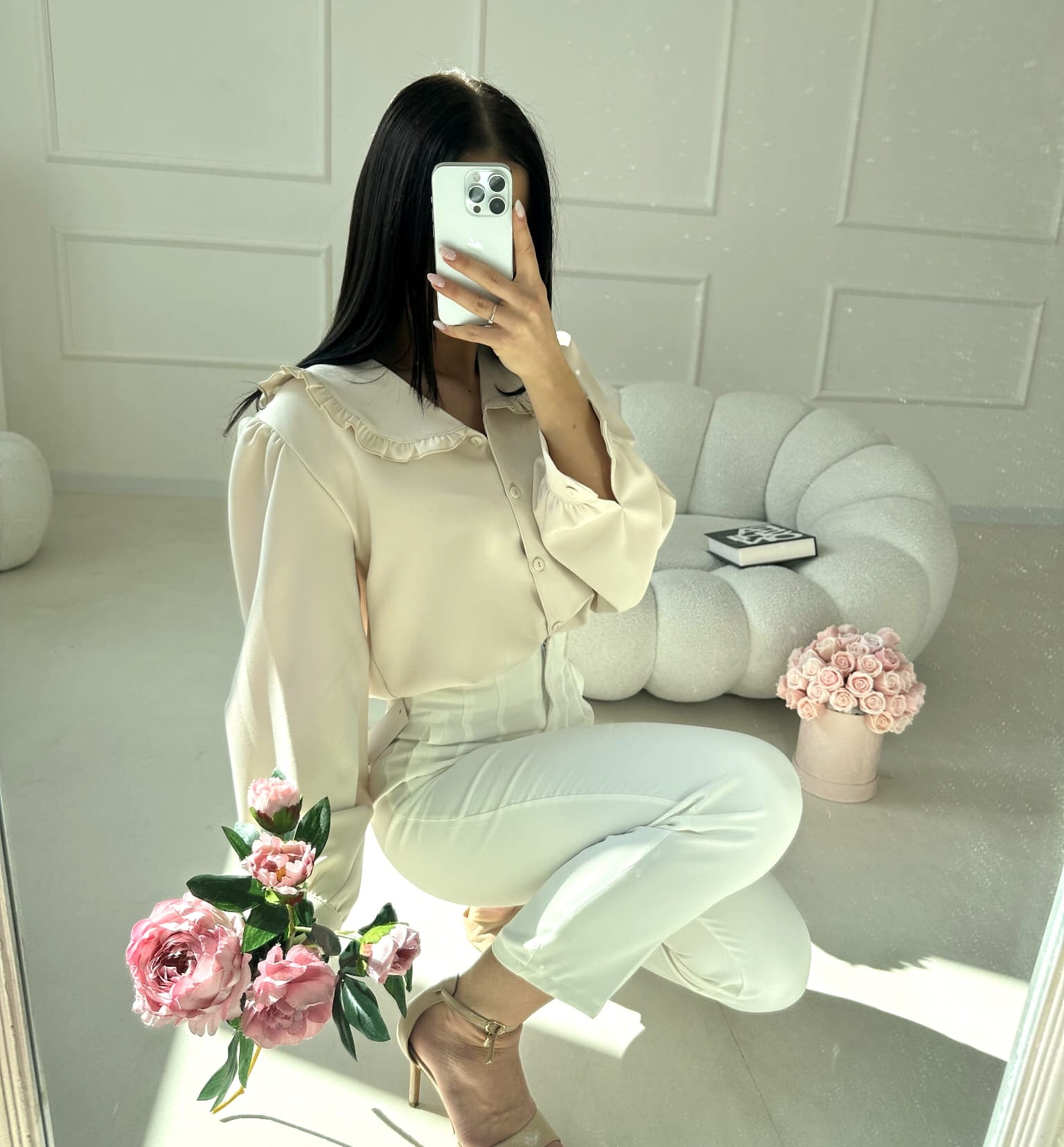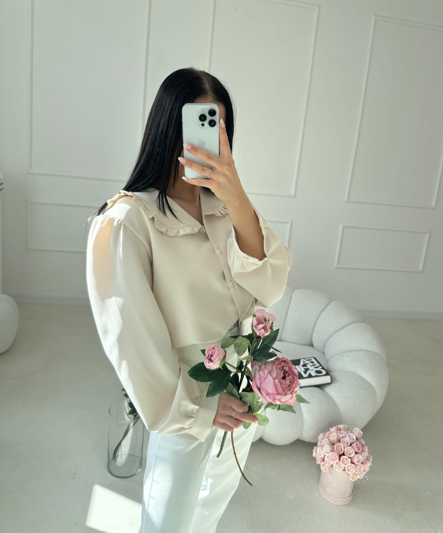 Koszula zapinana jest na guziki na całej długości, co nadaje jej klasycznego charakteru i sprawia, że świetnie prezentuje się zarówno samodzielnie, jak i w zestawieniu ze swetrami czy kardiganami. Długie rękawy z delikatnym bufkowaniem dodają lekkości oraz subtelnej kobiecości.
