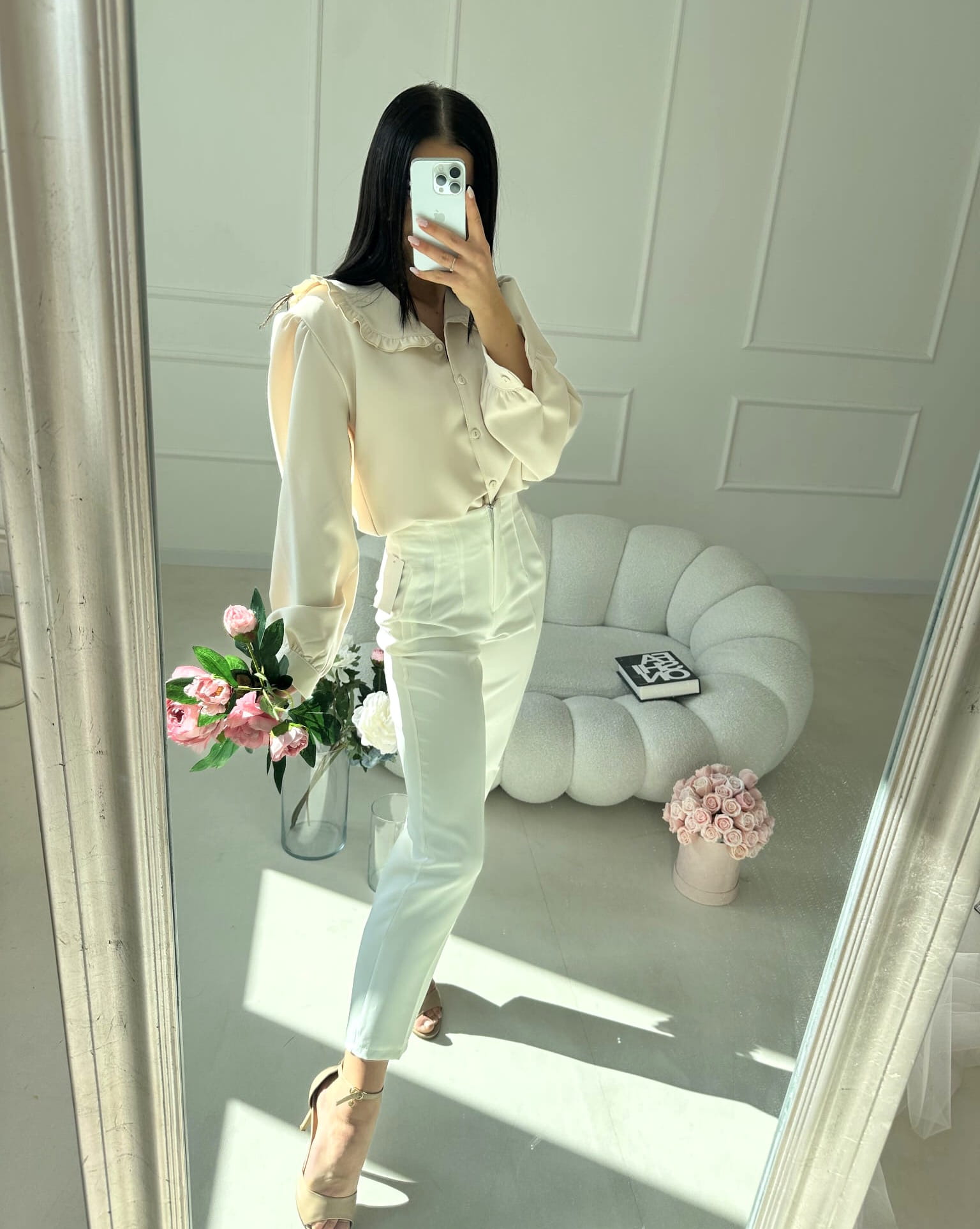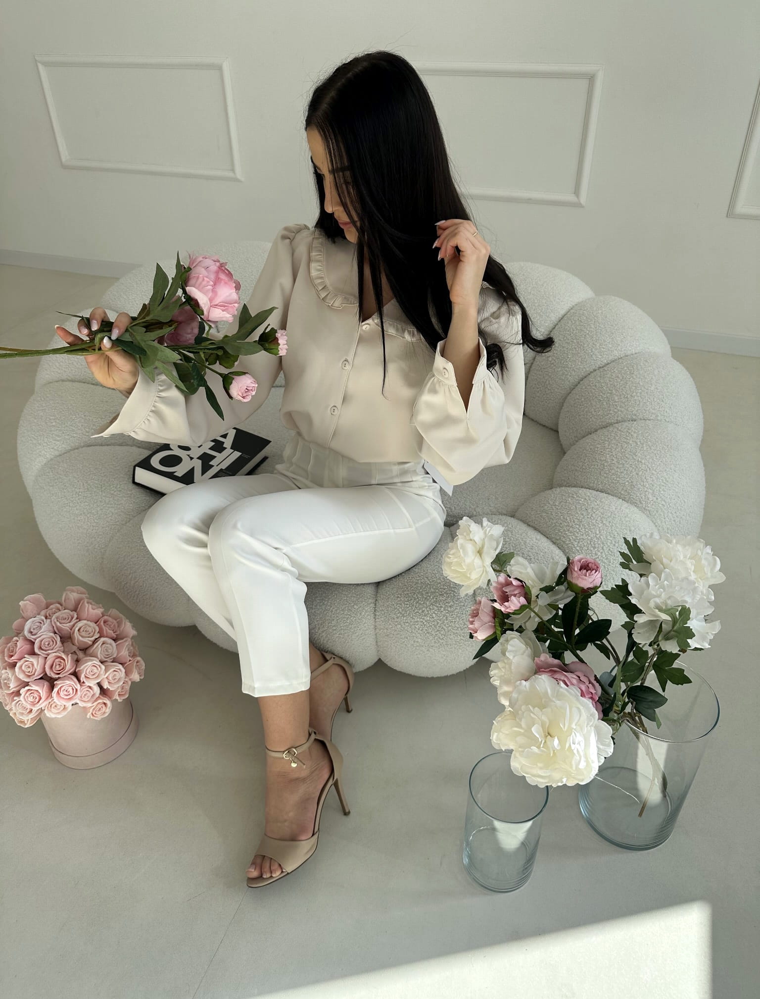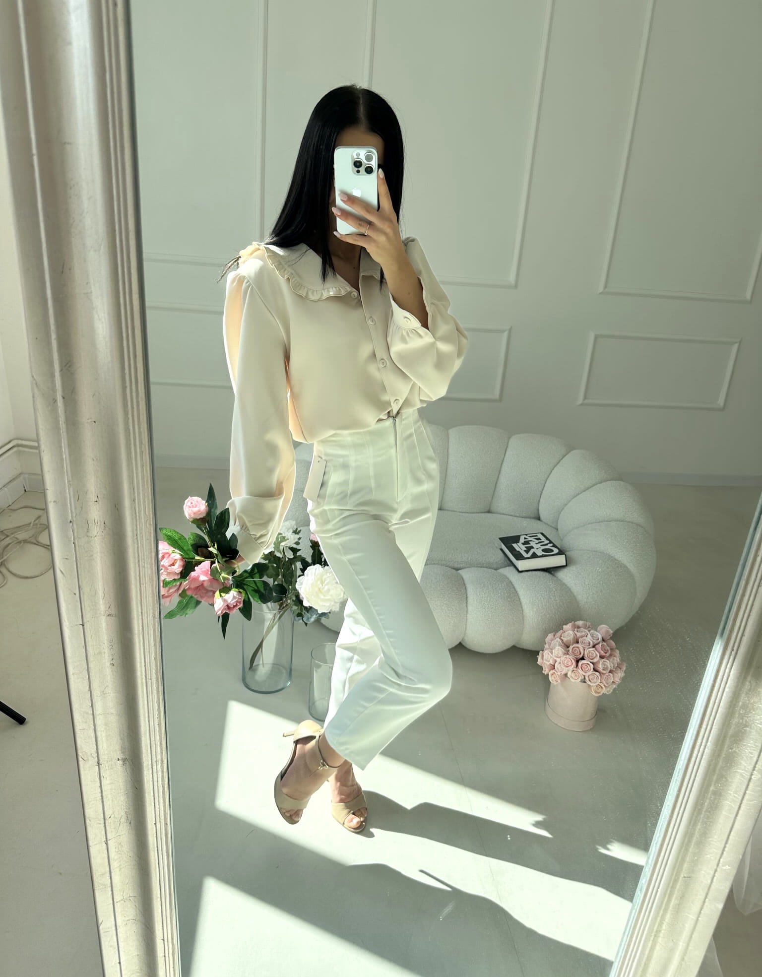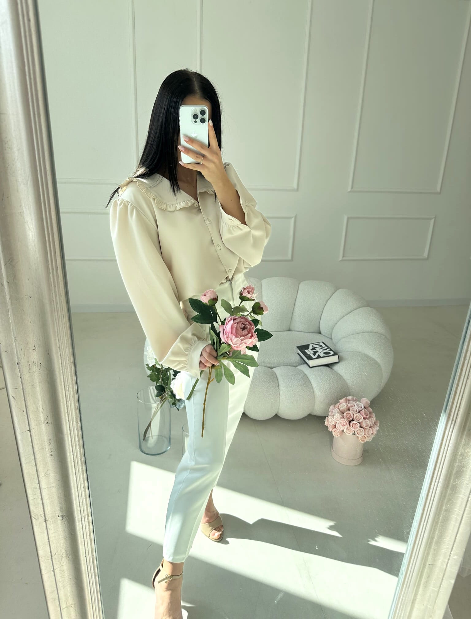 Koszula zapinana jest na guziki na całej długości, co nadaje jej klasycznego charakteru i sprawia, że świetnie prezentuje się zarówno samodzielnie, jak i w zestawieniu ze swetrami czy kardiganami. Długie rękawy z delikatnym bufkowaniem dodają lekkości oraz subtelnej kobiecości.