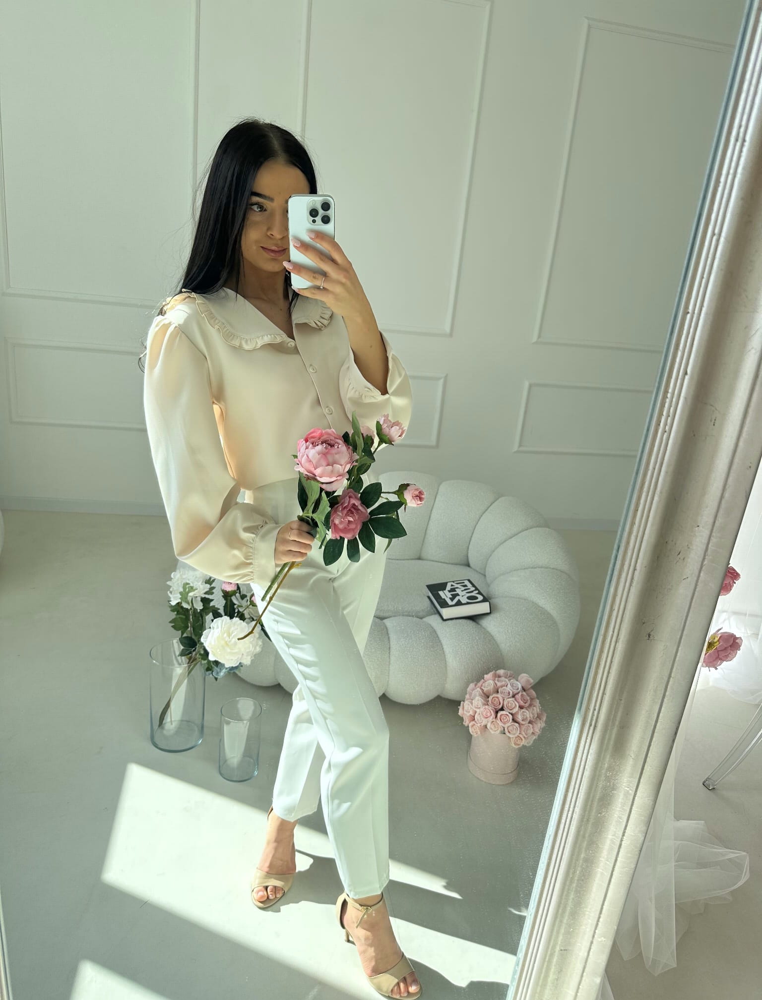 Beżowa koszula z kołnierzykiem marki Gold Lady to elegancka propozycja, która doskonale wpisuje się w wiosenne stylizacje. Model utrzymany jest w romantycznym stylu i wyróżnia się modnym kołnierzykiem w tym samym odcieniu materiału.