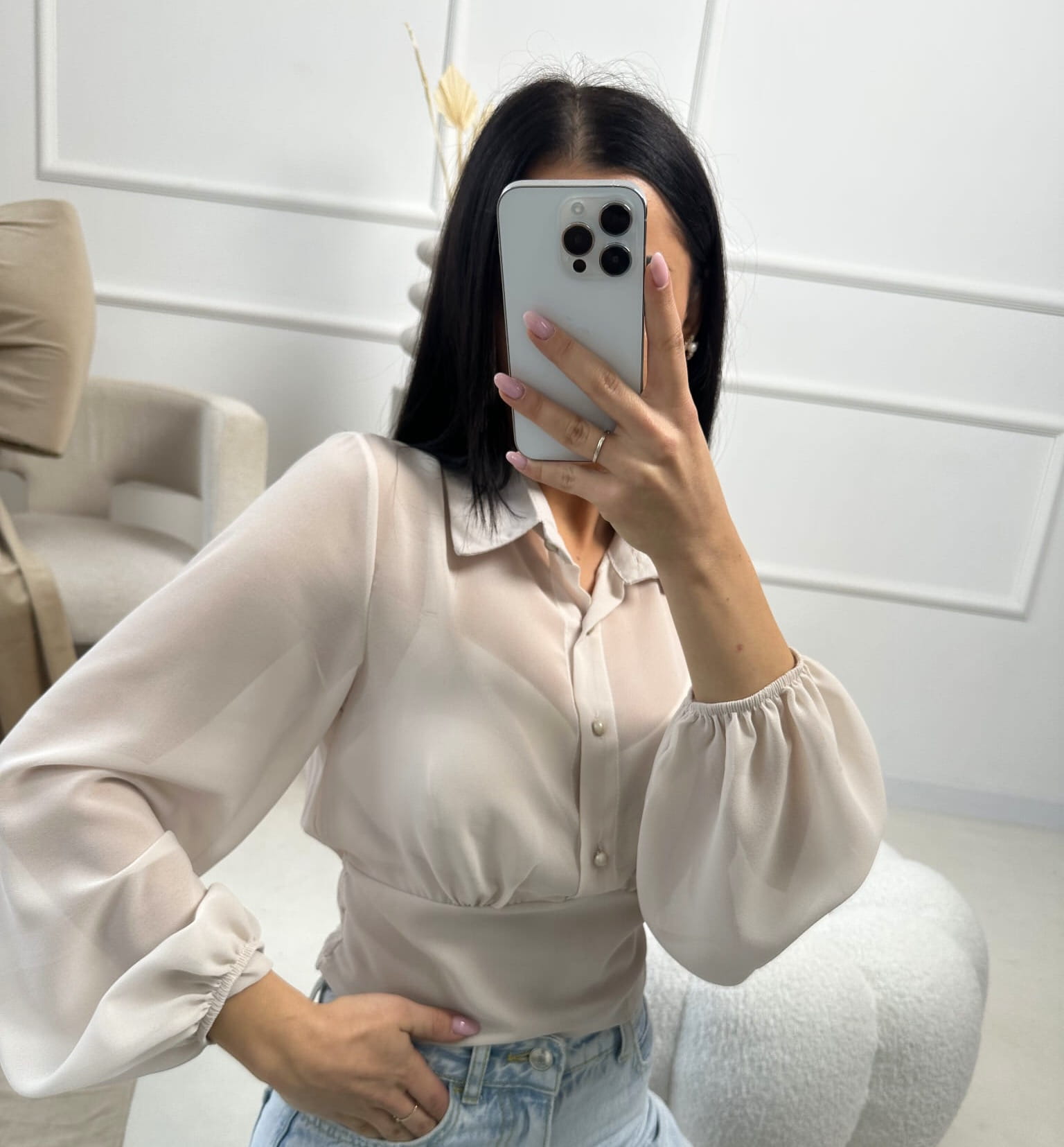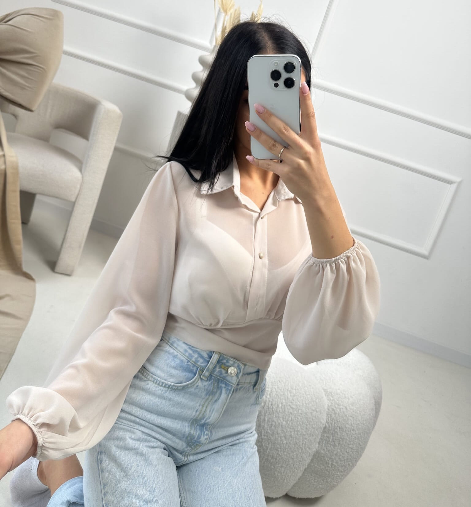 Koszula z cienkiego materiału beżowa