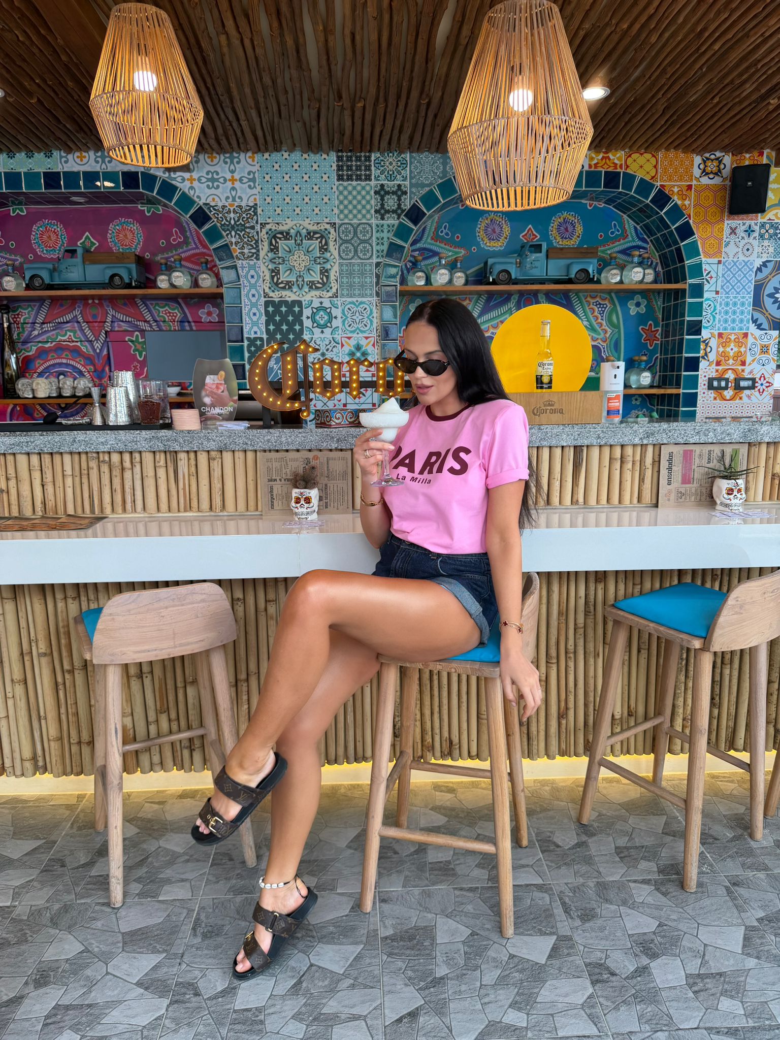 Koszulka La Milla różowa z brązowym napisem PARIS