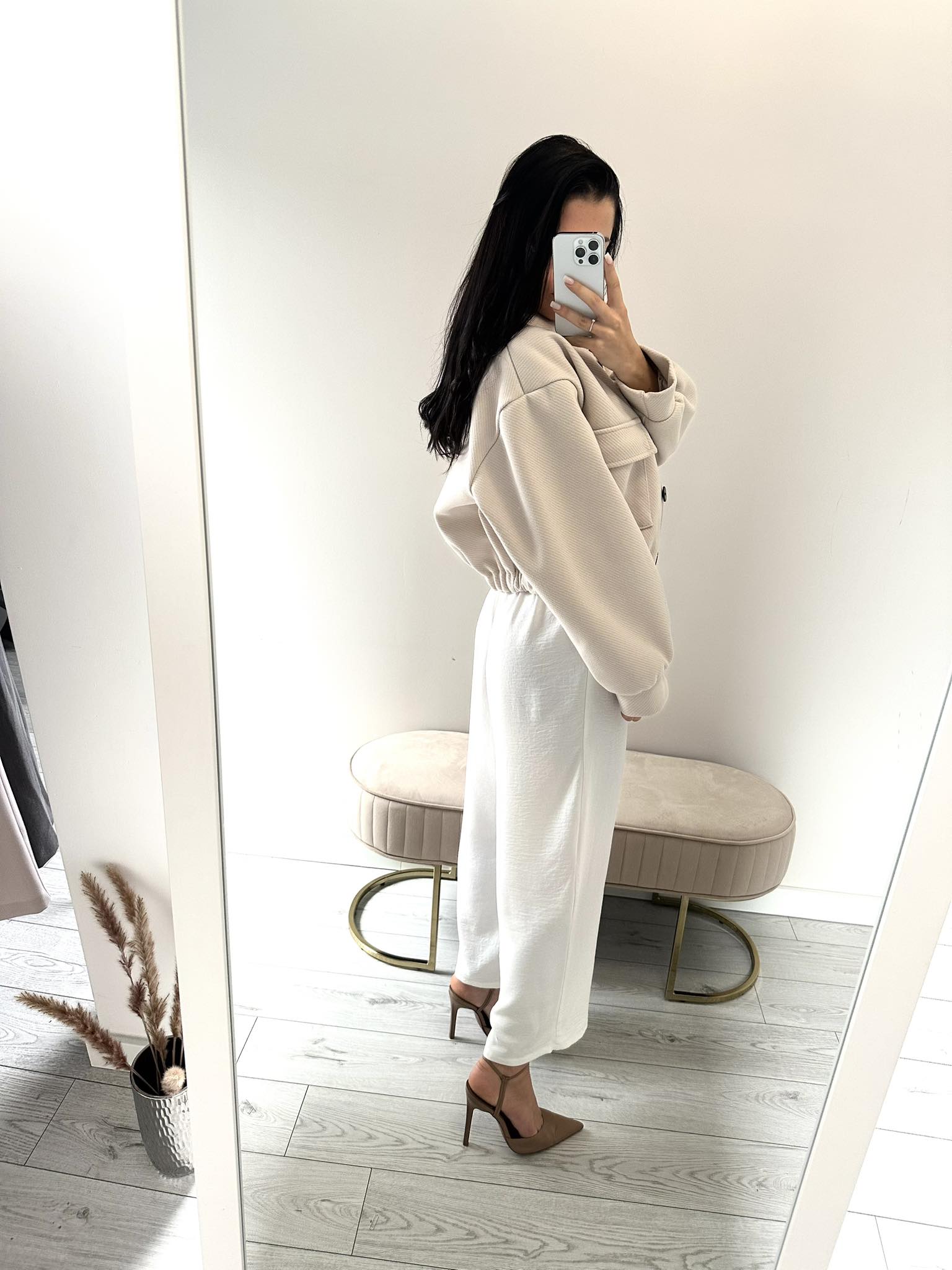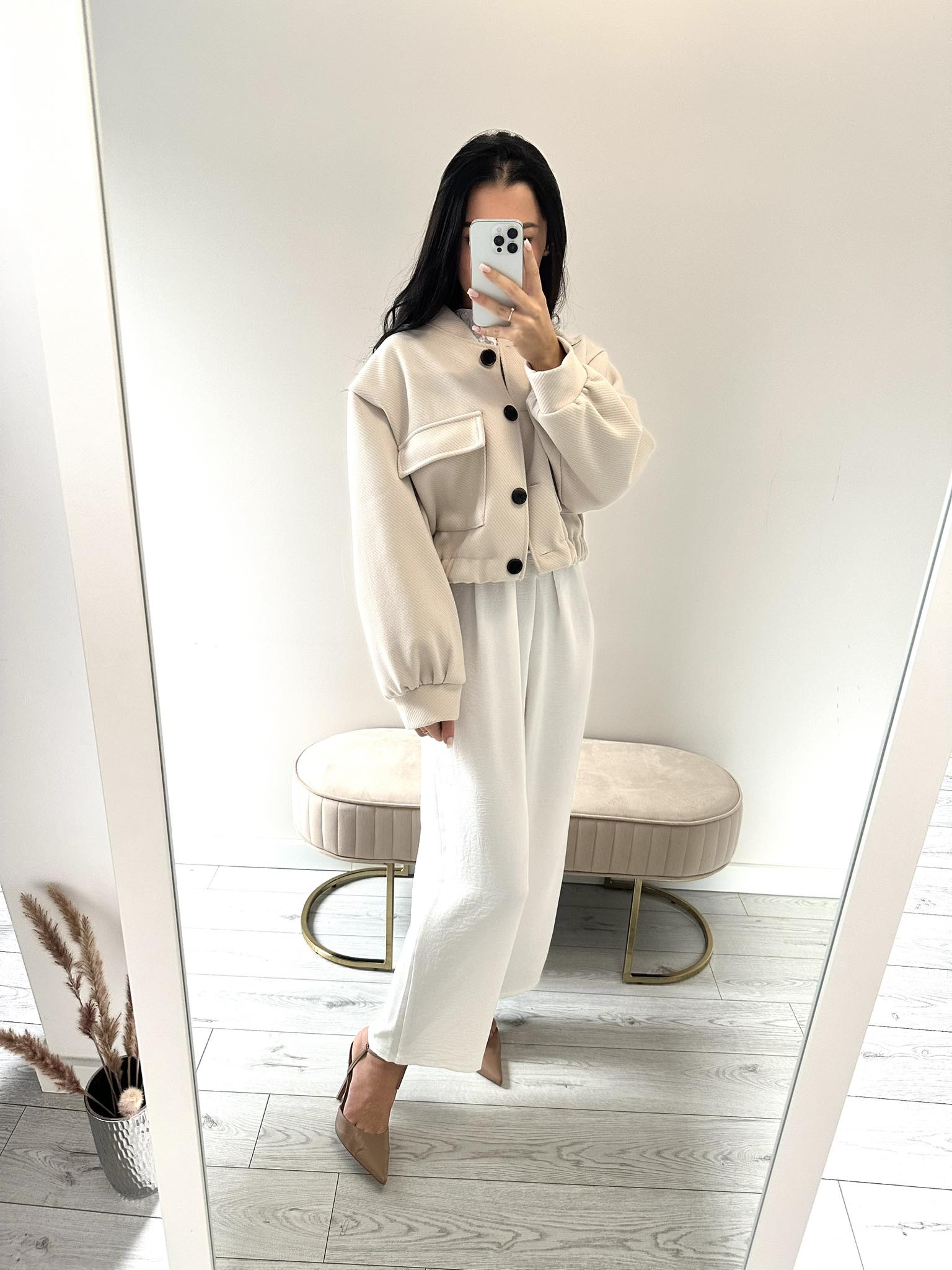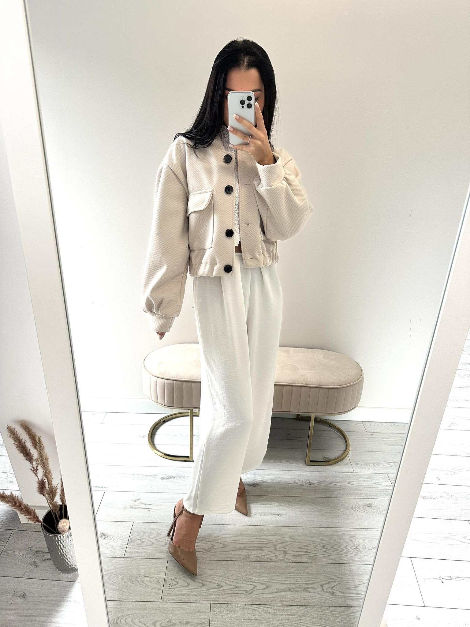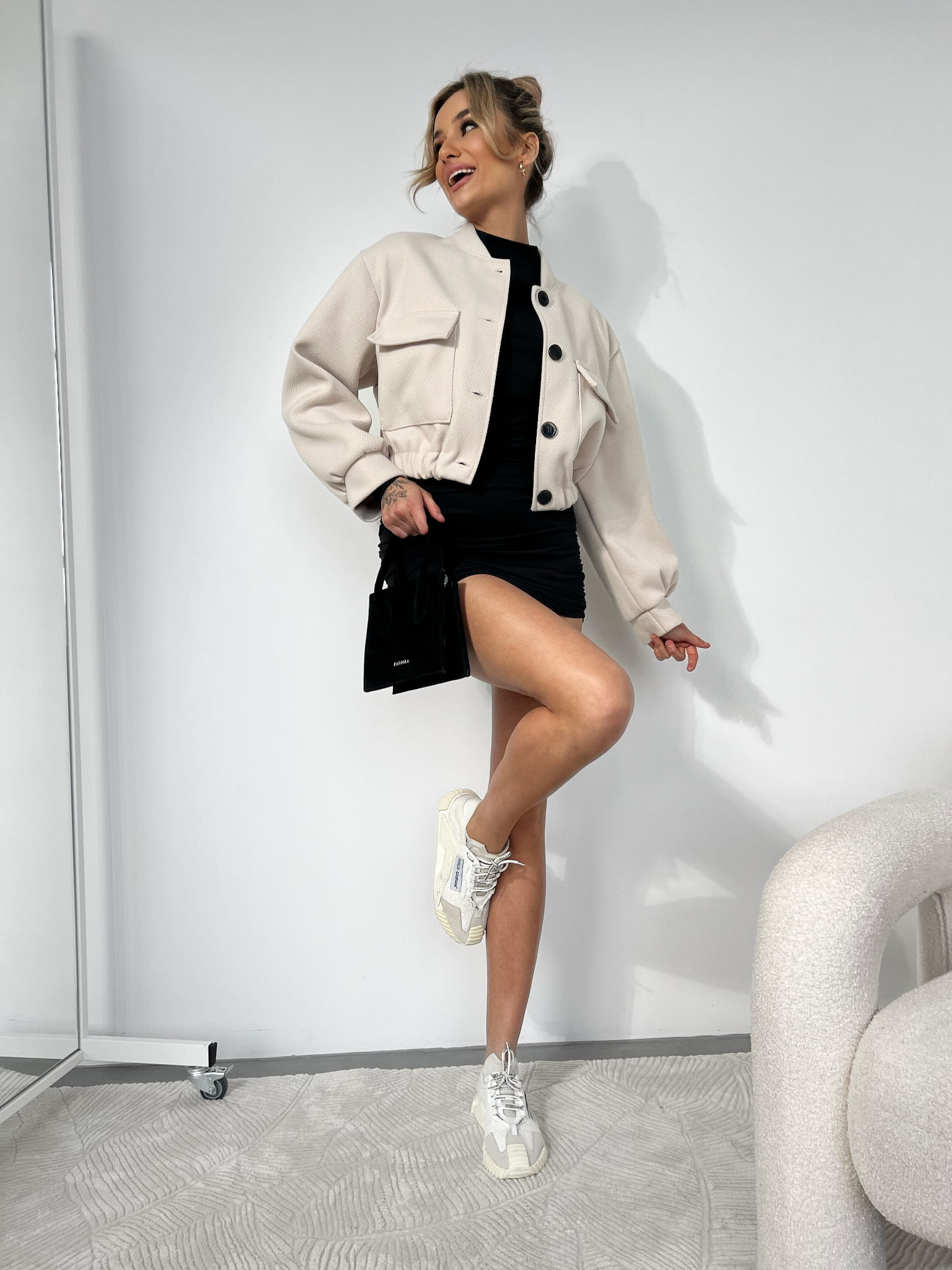 Kurtka bomberka idealna do każdej stylizacji. Pasuje zarówno do tych eleganckich jak i sportowych. Posiada ściągacz, który idealnie podkreśla figurę.