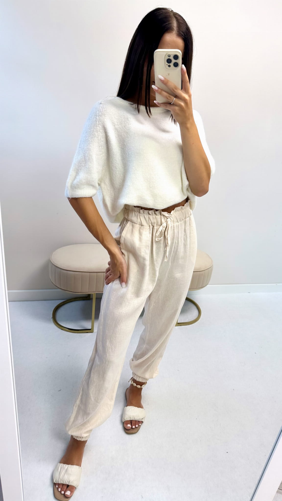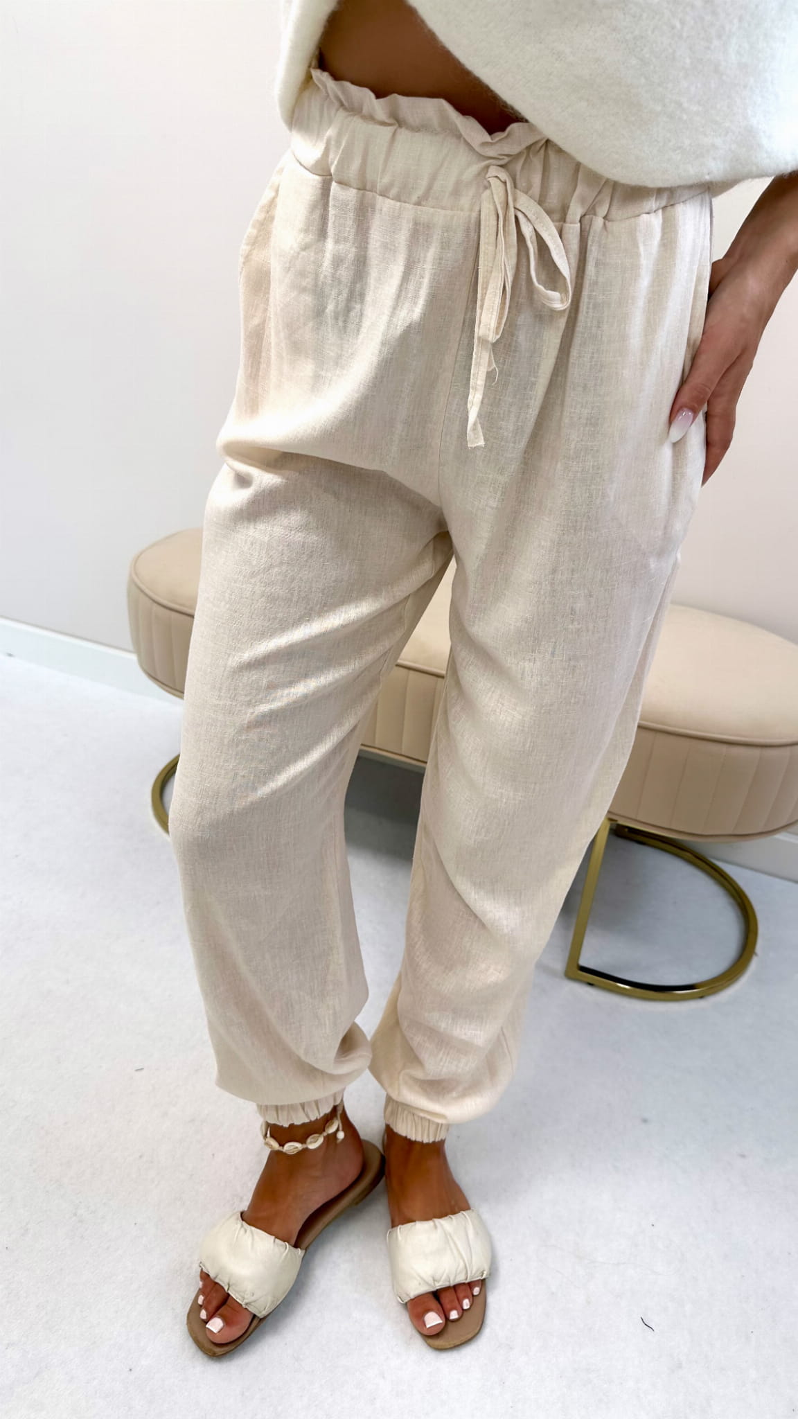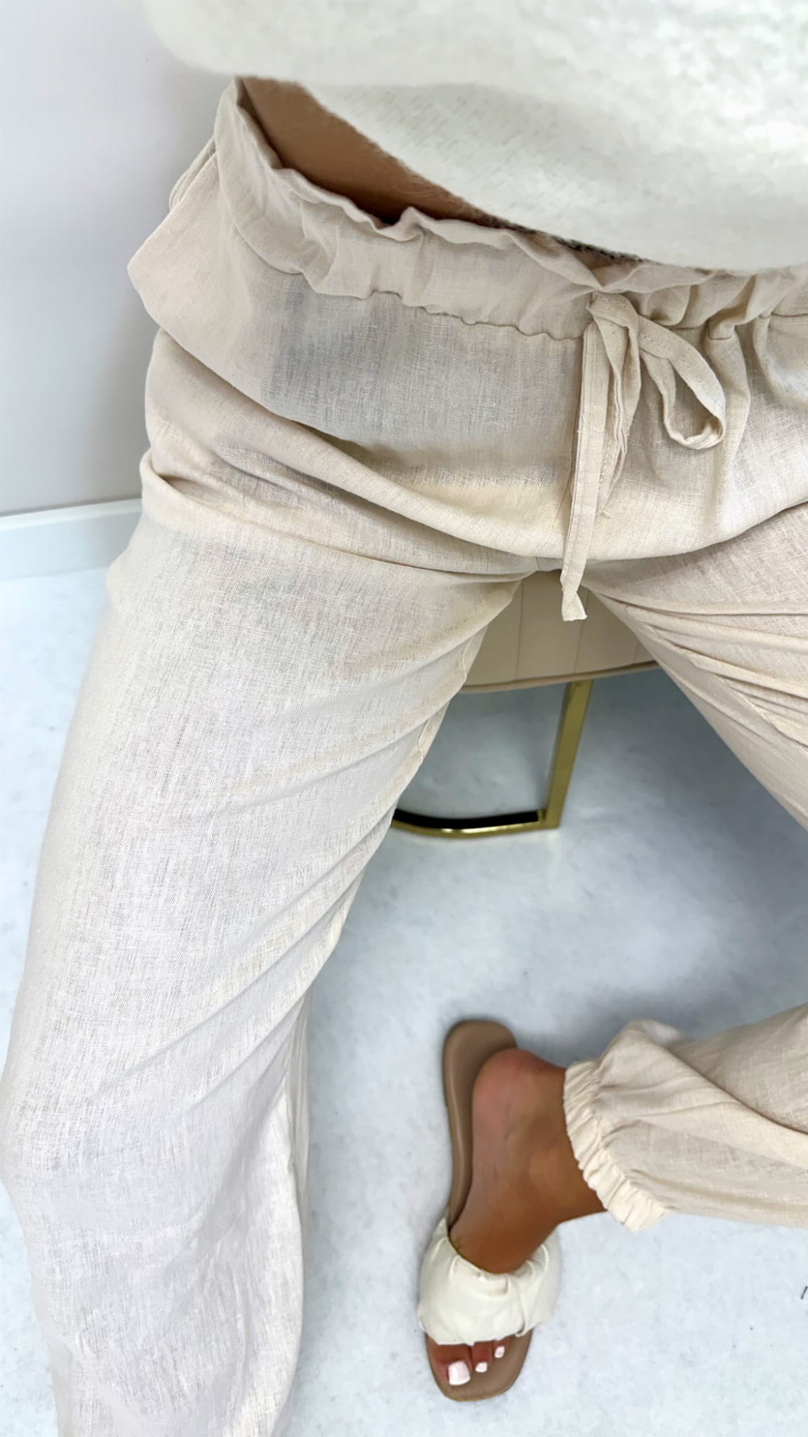 Spodnie wykonane z oddychającego lnu idealnie sprawdzą się na wiele okazji. Świetnie wyglądają do szpilek, klapek jak i sportowych butów.
