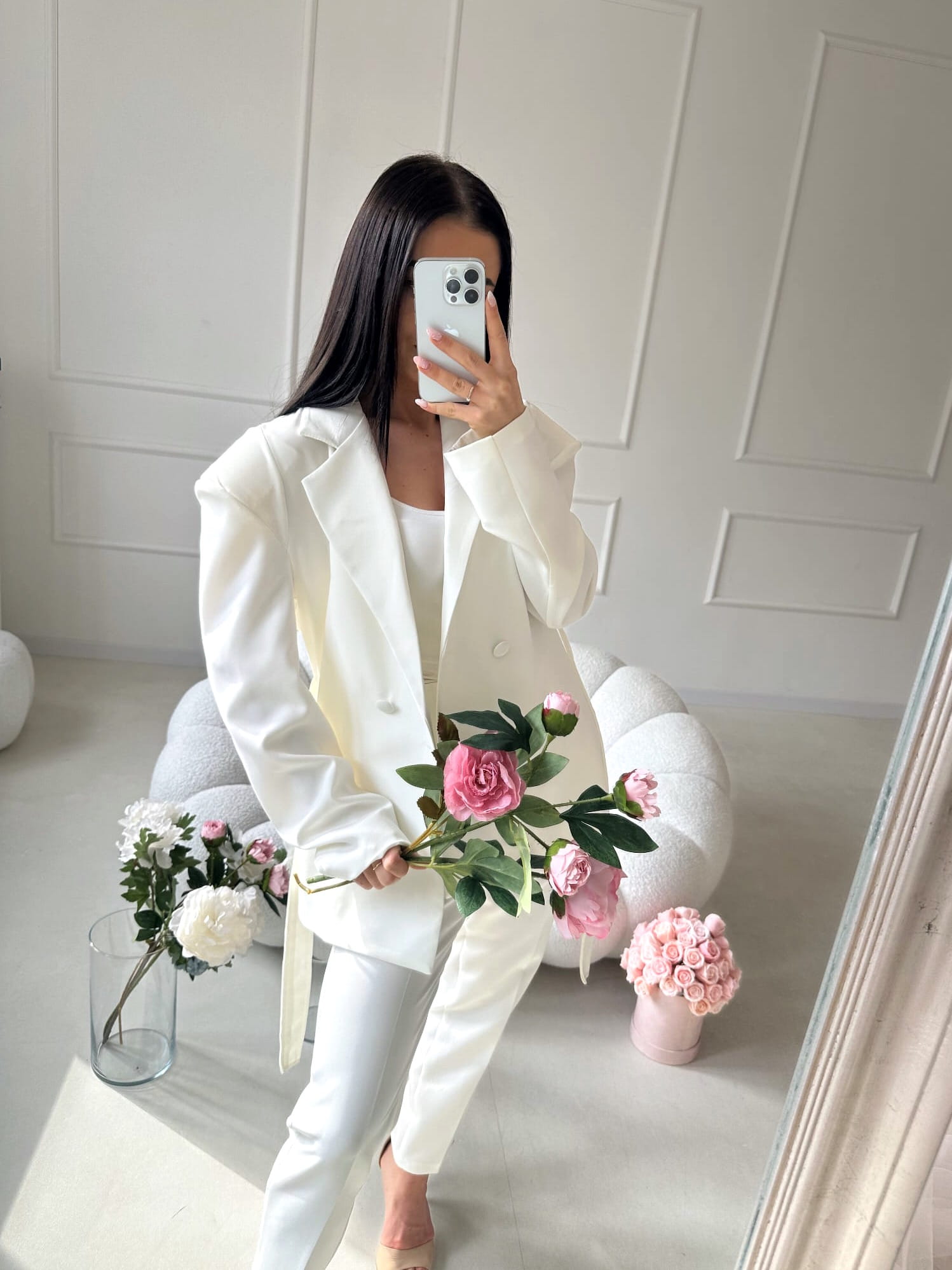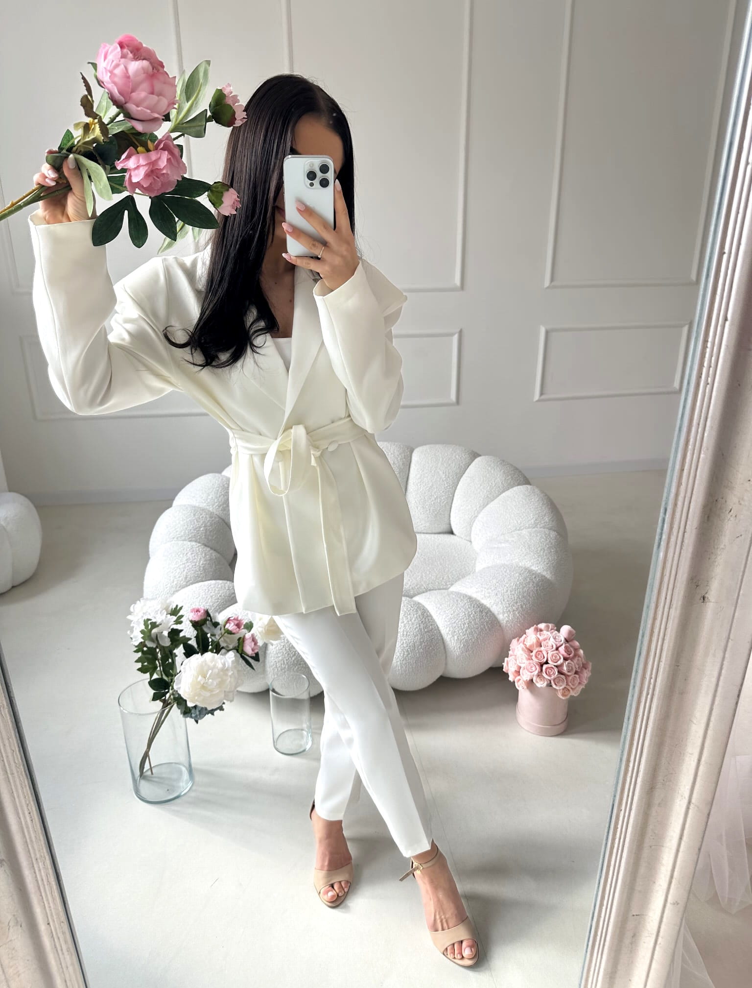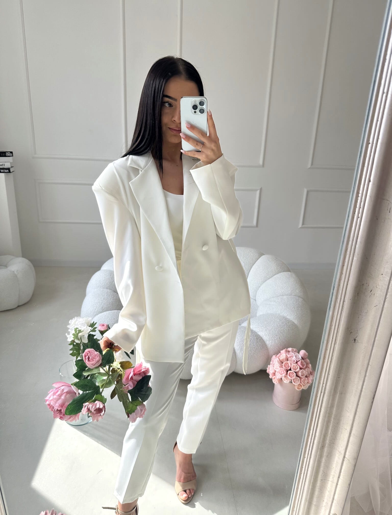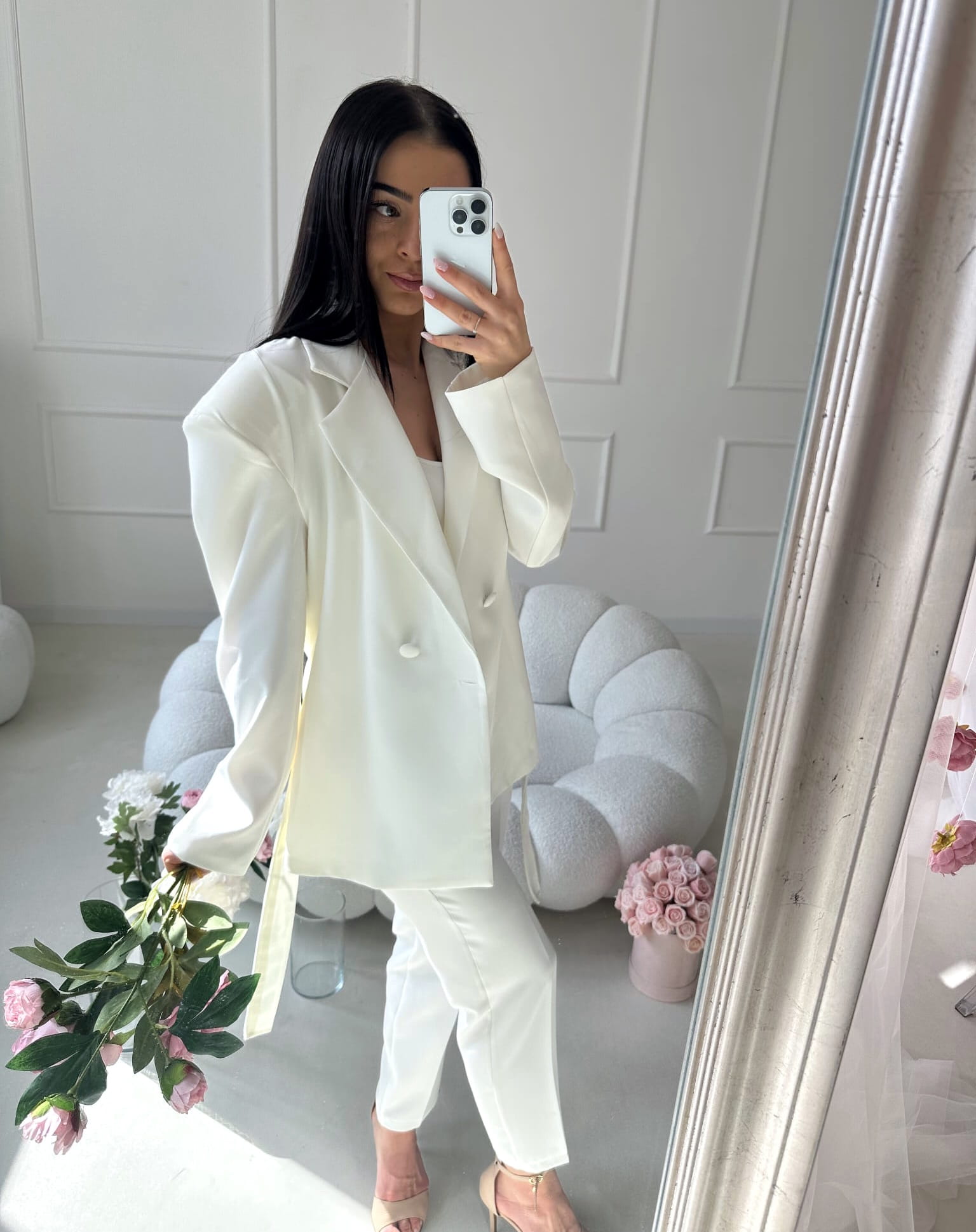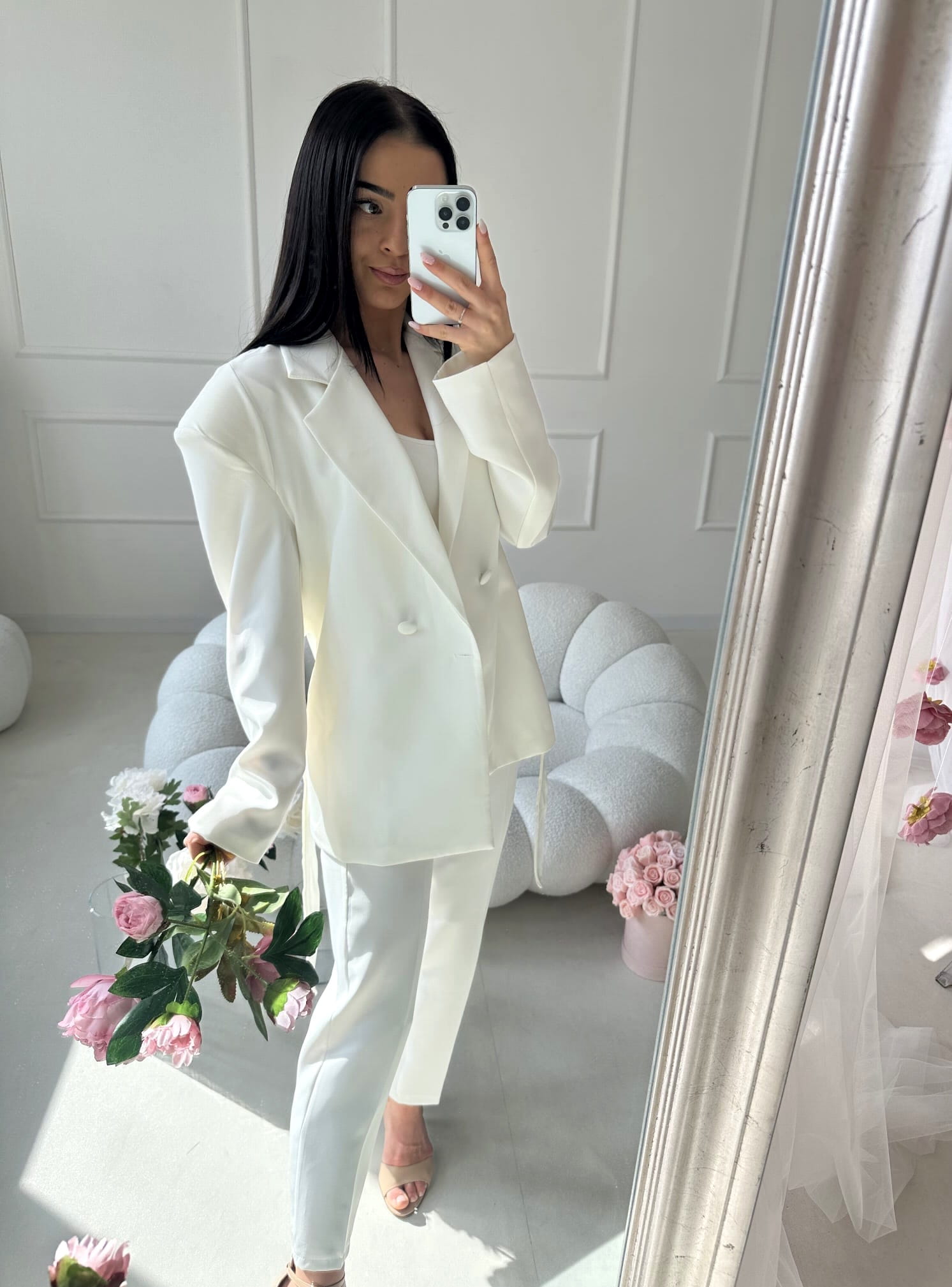 Marynarka doskonale pasuje do spodni AURELIA, tworząc elegancki, spójny komplet, który podkreśla kobiecą sylwetkę i wygląda niezwykle stylowo.
