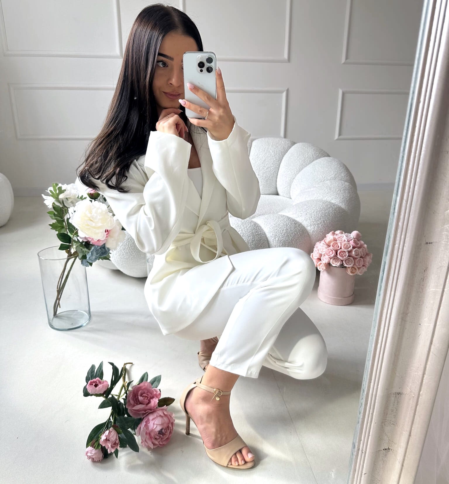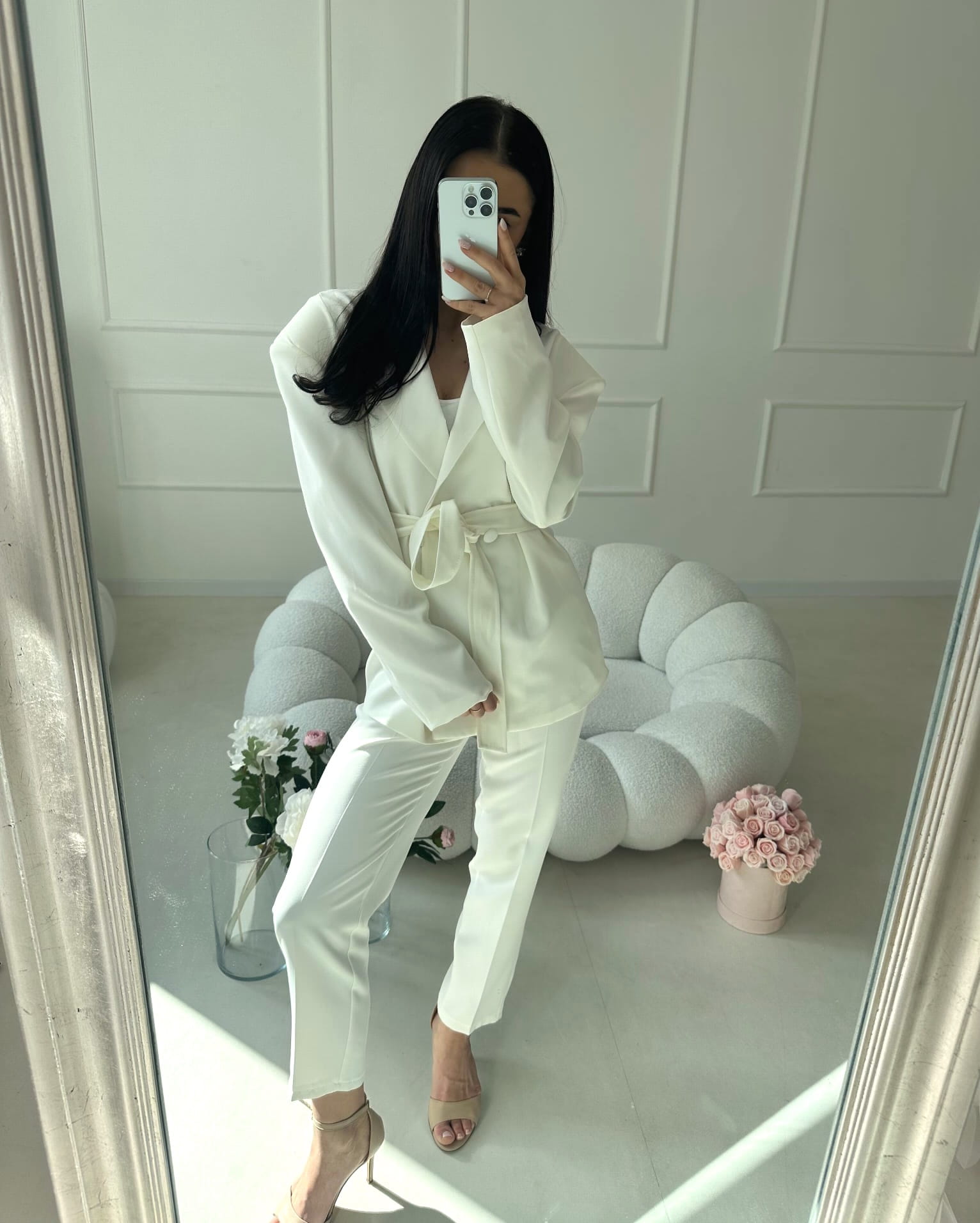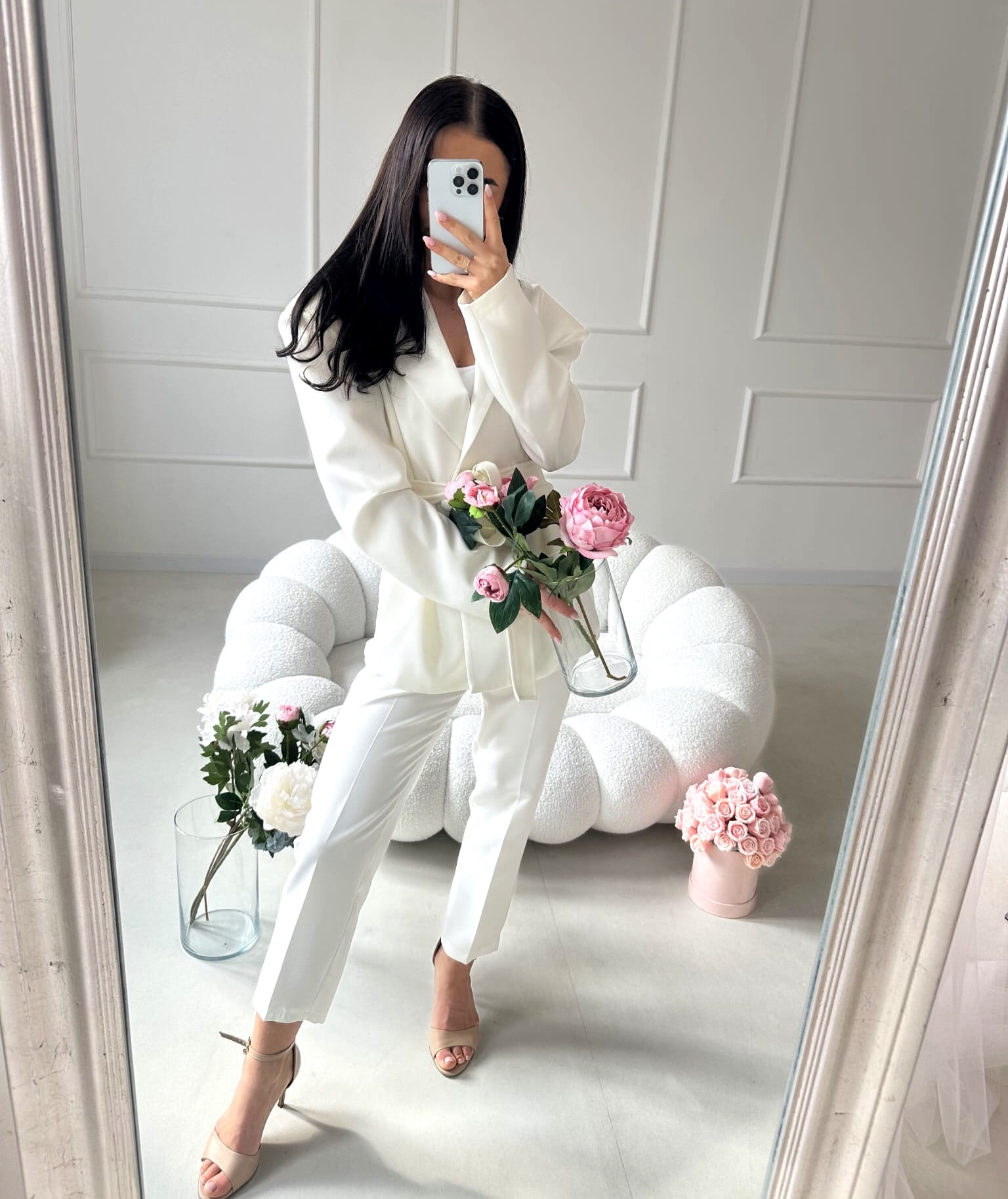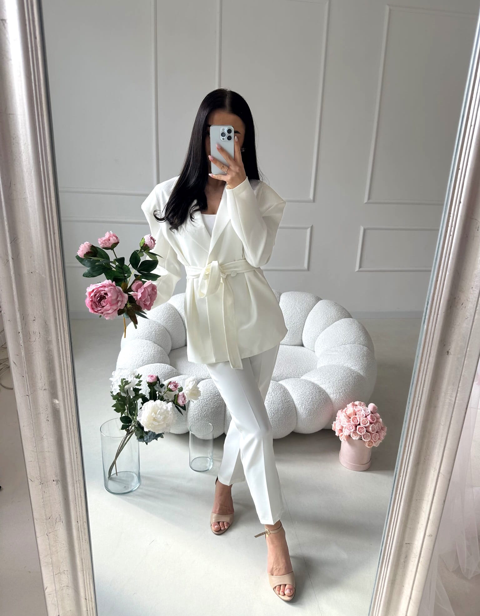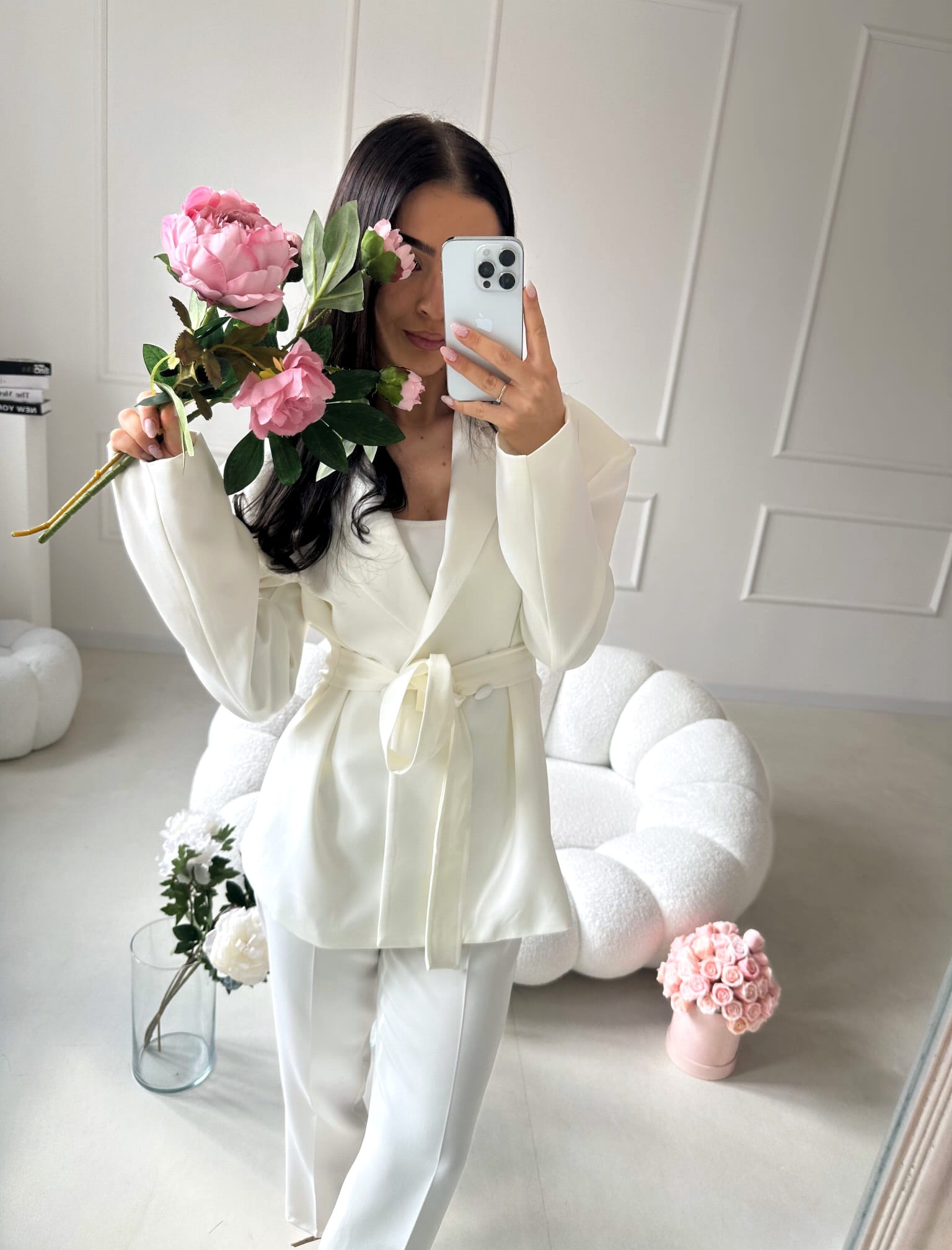 Marynarka doskonale pasuje do spodni AURELIA, tworząc elegancki, spójny komplet, który podkreśla kobiecą sylwetkę i wygląda niezwykle stylowo.