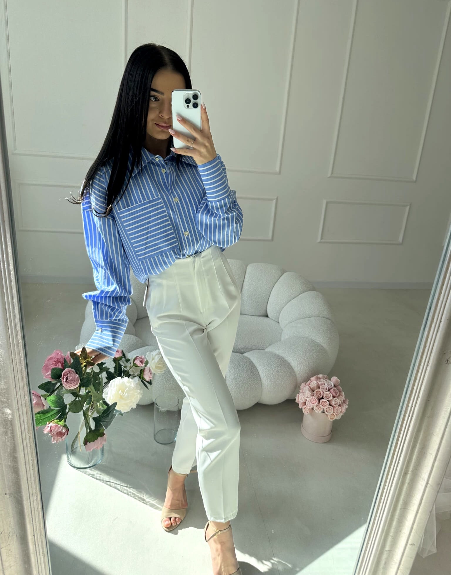 Spodnie AURELIA doskonale komponują się z koszulą, topem lub marynarką, tworząc stylowe i kobiece stylizacje. W połączeniu z marynarką stanowią elegancki komplet idealny na spotkania, do pracy czy wyjątkowe okazje.