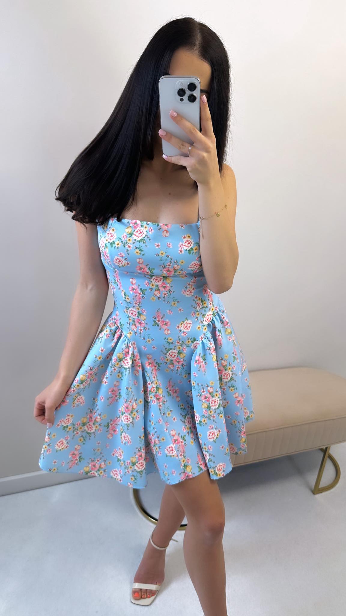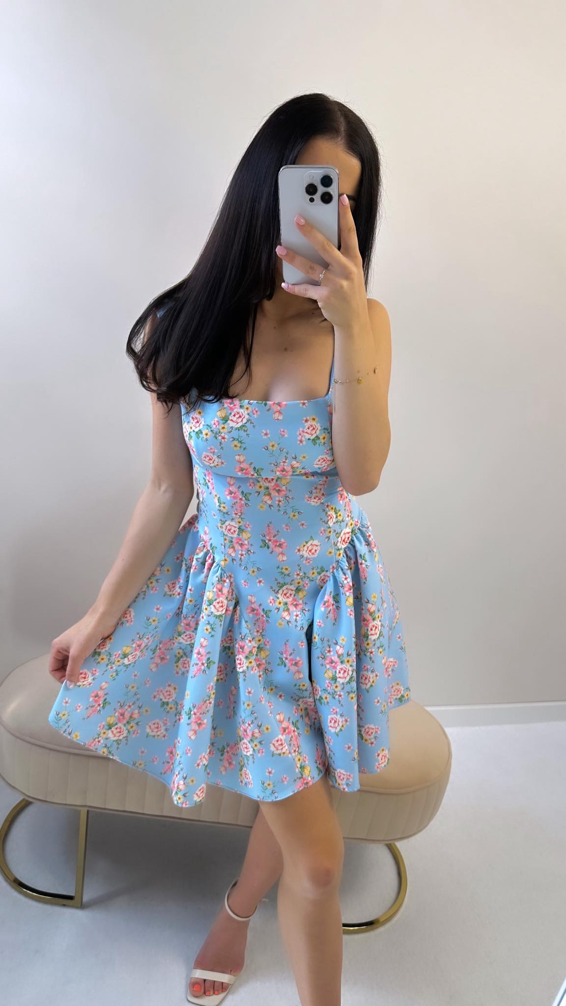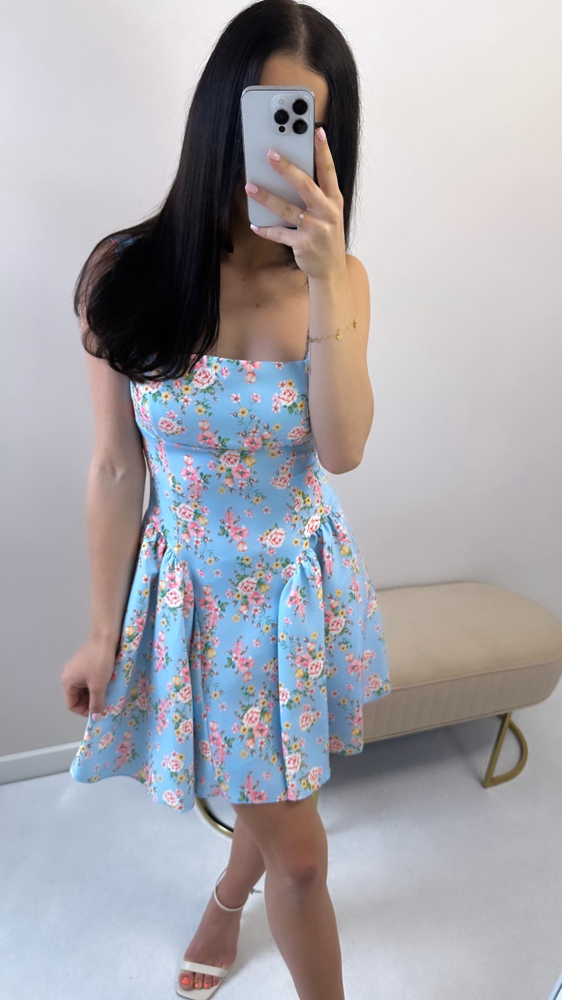 Piękna sukienka STELLA o bardzo kobiecym kroju. Sukienka posiada efekt gorsetu, który pięknie modeluje sylwetkę. Można ją idealnie dopasować w talii związując wiązanie w odpowiedni przez nas sposób. Posiada zamek oraz dekolt z przodu i z tyłu.